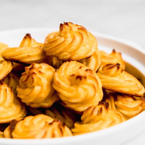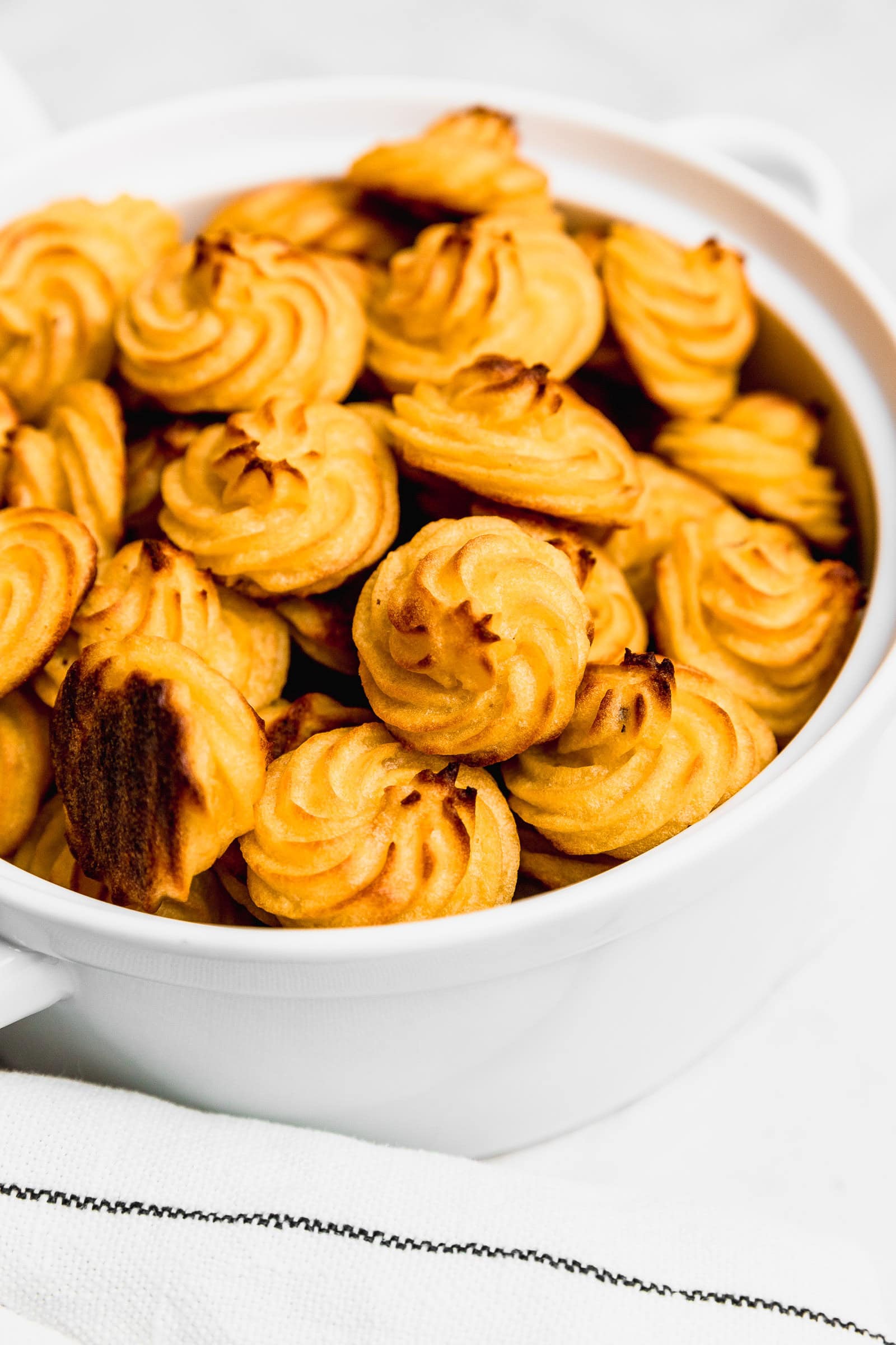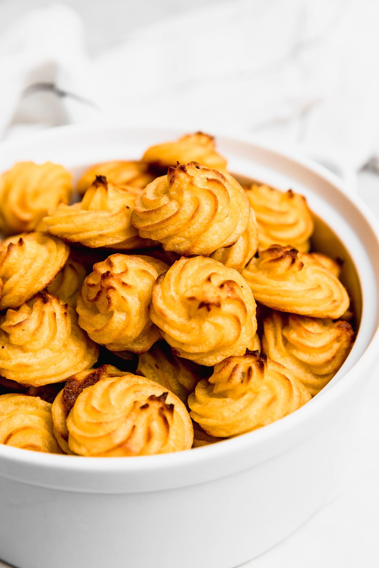 Las papas duquesas al horno son un clásico francés. Son deliciosas, con una corteza dorada por fuera y un centro de puré delicioso. Es un acompañamiento ideal para las cenas de fin de año, va muy bien con distintos tipos de proteína.