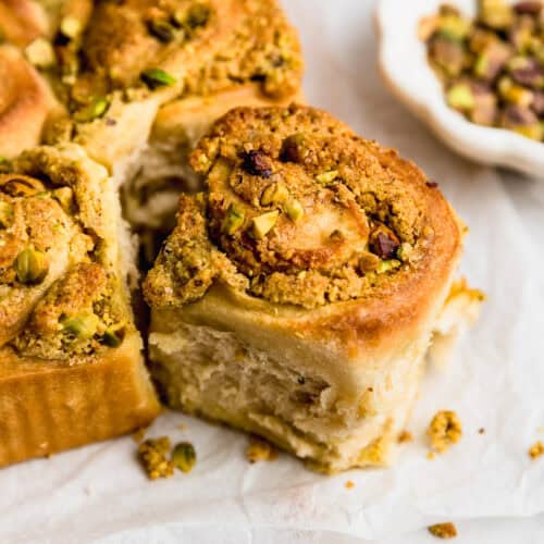 Si eres amante del pistacho tienes que probar esta receta de rollitos de pistacho. La masa es increíblemente suave y por dentro tiene el relleno más delicioso de pistacho. Es cremoso, sabroso y para nada complicado de hacer.