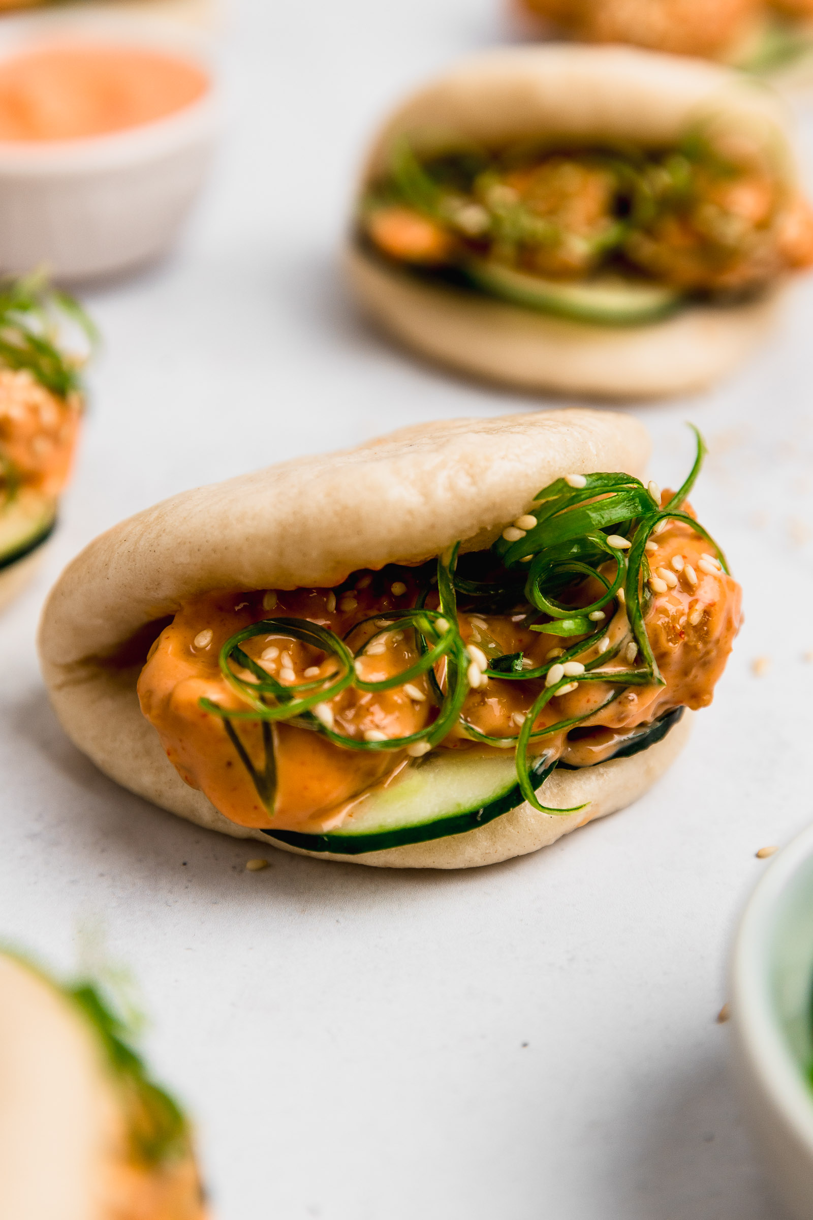 Agregar los baos con el papel aún en la base a la o las canastas, que entren cómodamente. Tapar y cocinar por 12 minutos sin abrir la tapa. Luego del tiempo, retíralos y ponlos en una bandeja y cúbrelos con un paño de cocina húmedo para que no se sequen. Repite con todos los baos.